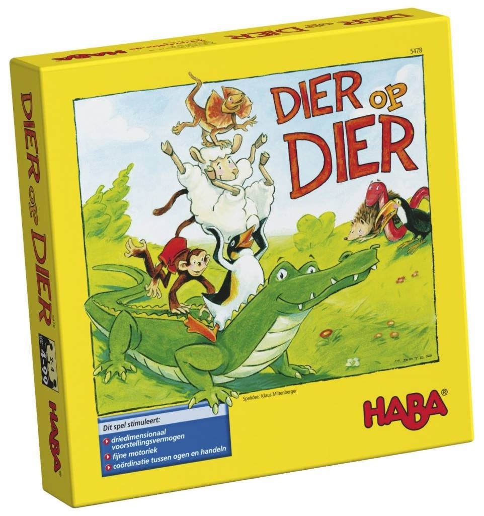 Met het Haba spel Dier op dier beleef je uren speelplezier terwijl je de dieren zo hoog mogelijk op elkaar probeert te stapelen! Dit vrolijke houten stapelspel daagt je uit om met een vaste hand en een flinke dosis fantasie een indrukwekkende dierenpiramide te bouwen. Durf jij de pinguïn op de krokodil te zetten, het schaap op de pinguïn en de slang bovenop?