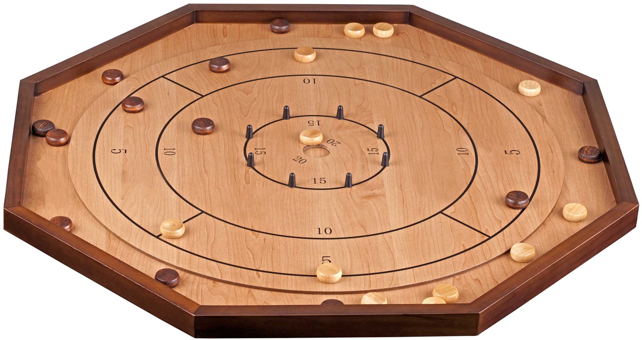 Het stevige, achthoekige bord is gemaakt van MDF en vurenhout, en de speelstukken zijn van duurzaam Schima hout. Of je nu met z'n tweeën of met vier spelers speelt, Crokinole zorgt altijd voor een gezellige en competitieve sfeer. Ideaal voor families, vrienden of spelletjesavonden!