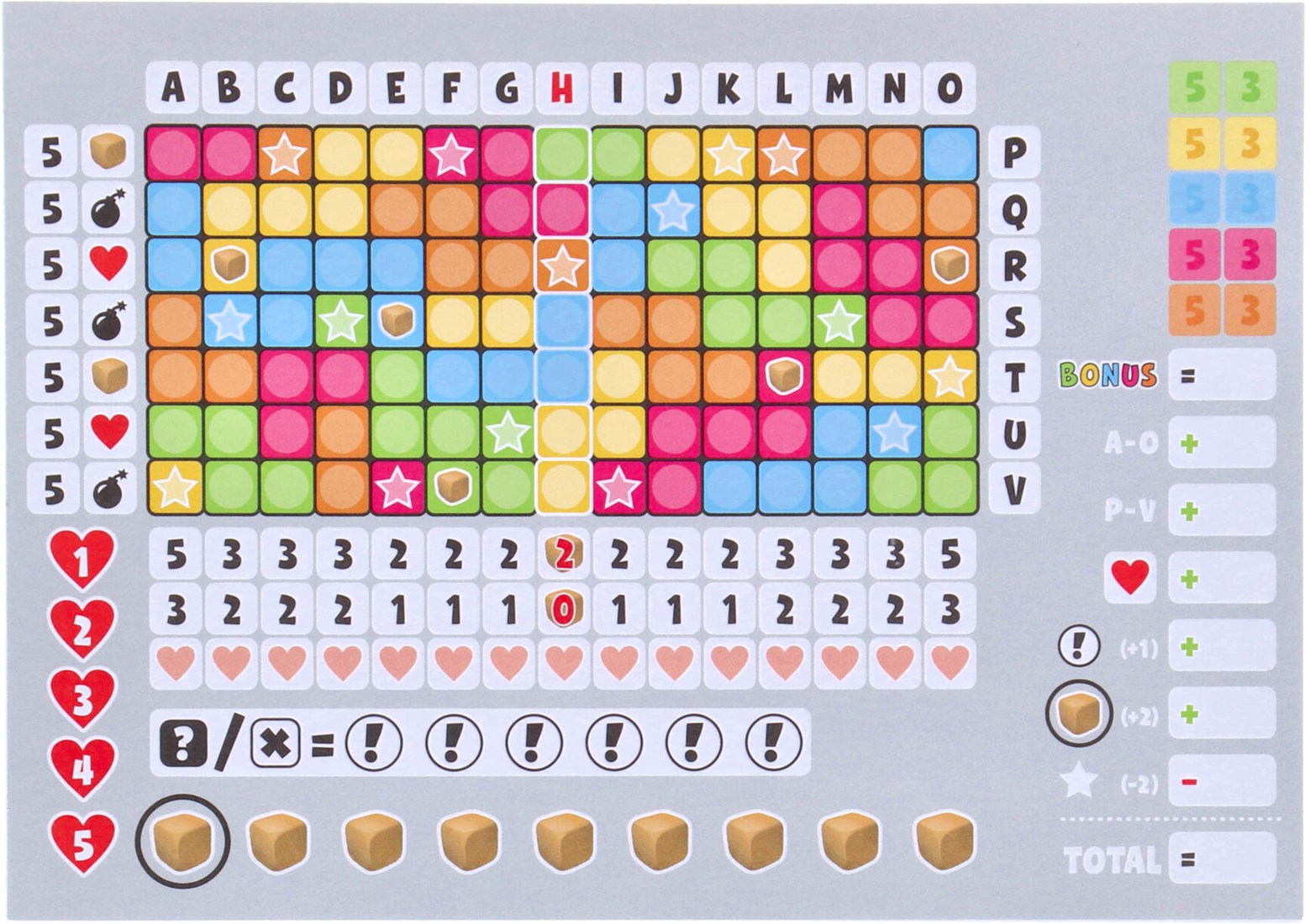 Het dobbelspel Keer op Keer 2 van 999 Games is dé uitdaging voor iedereen die van strategie en spanning houdt. In dit roll & write spel probeer je met slimme keuzes en een beetje geluk de meeste punten te scoren. Dankzij de nieuwe dobbelstenen en extra spelelementen, zoals de bom en het hart, wordt elk potje weer anders en verrassend leuk!
