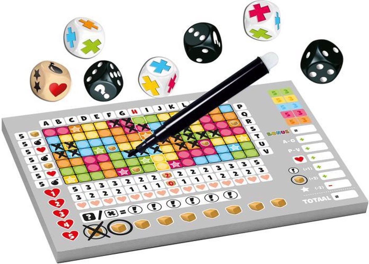 - Inclusief scoreblok, speciale dobbelstenen en spelbord